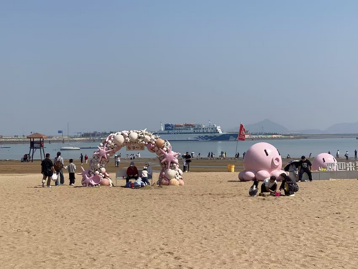 In the morning, we toured the Zaihaiyifang Park. Here, there are no violent waves, only gentle ripples licking the sandy beach. I stepped barefoot into the waters of the Yellow Sea, feeling its coolness and inclusiveness.