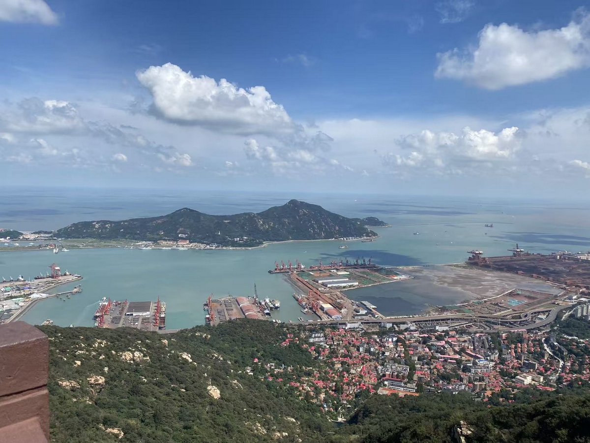 At noon, we toured the Maritime Yuntai Mountain. Standing on the mountaintop viewing platform, I truly understood the meaning of "Lianyungang": beneath my feet was the green-peaked Yuntai Mountain, in front of me was a bustling modern port in operation, and in the distance was the vast Yellow Sea. Mountains, seas, ports, and the city perfectly blended here, forming a magnificent three-dimensional picture.