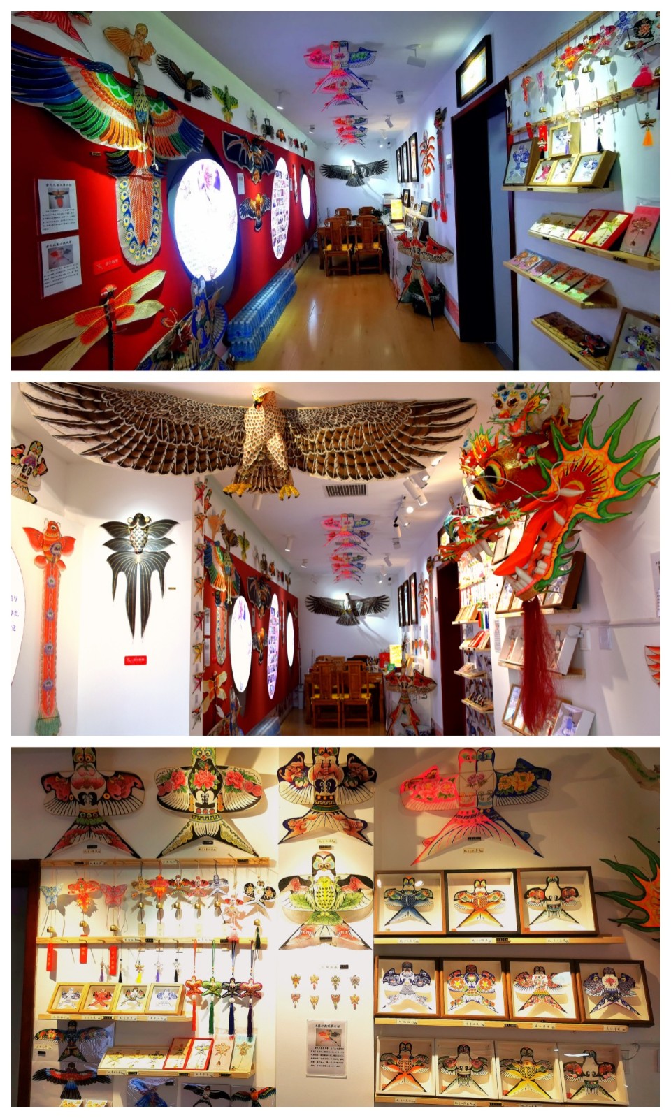 The shop displays various handmade kites and special cultural creative products, and also offers on-site kite-making experiences for visitors.
