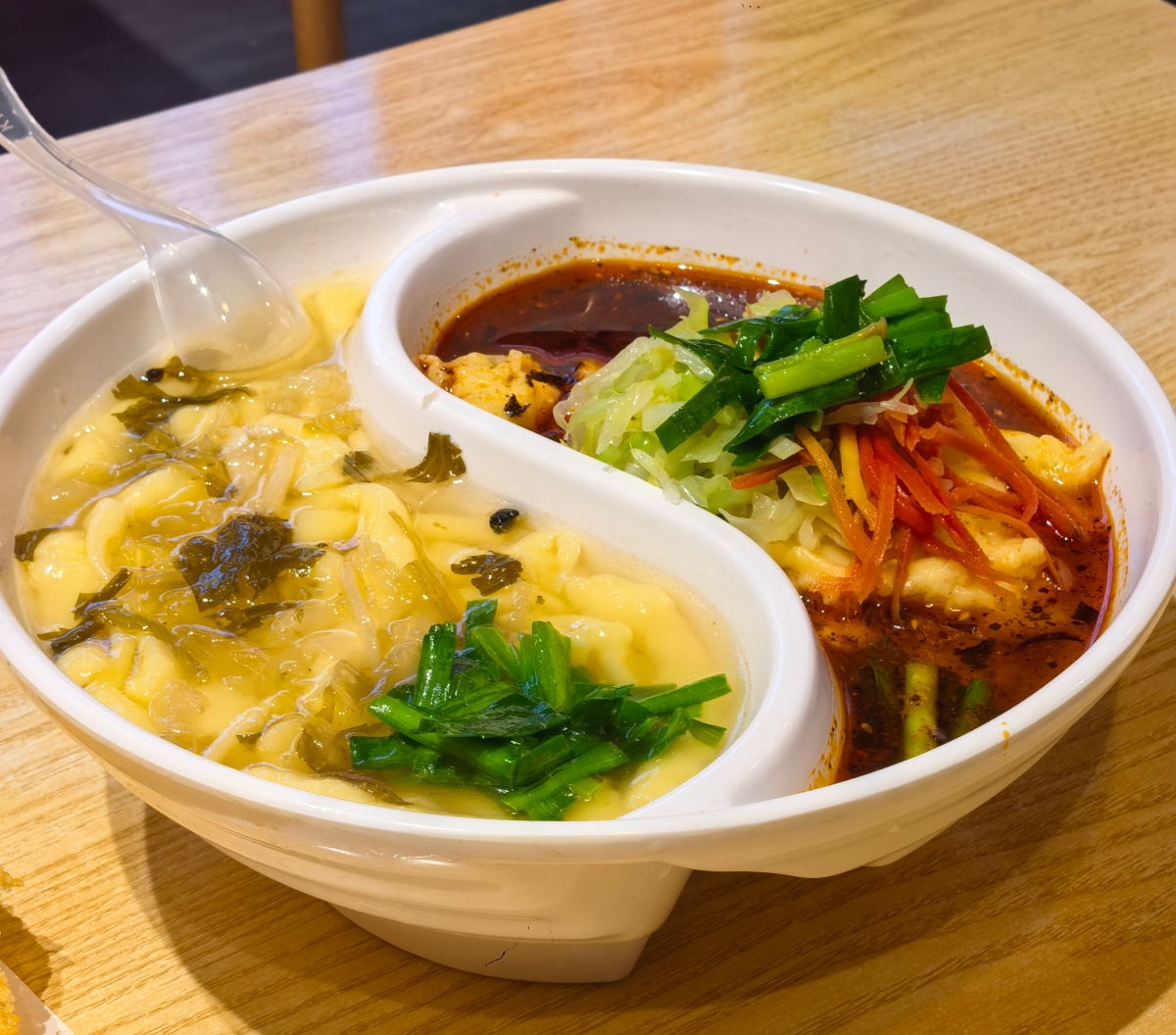 The aroma of dinner led me to Qinren Jiaotuan(秦人搅团Qin People’s Stir-Fried Porridge). Their signature dish, "Shui Weicheng"(水围城) , features golden porridge encircled by savory sauce, resembling a miniature city surrounded by water. The texture is smooth, and the aroma of oil is intoxicating. The hospitable staff recommended a combo of stir-fried porridge and jiangshui yuyu(浆水鱼鱼sour soup fish noodles), allowing me to sample two classic West-Fu (Shaanxi’s western region) delicacies in one go—a culinary dialogue between tradition and modernity.