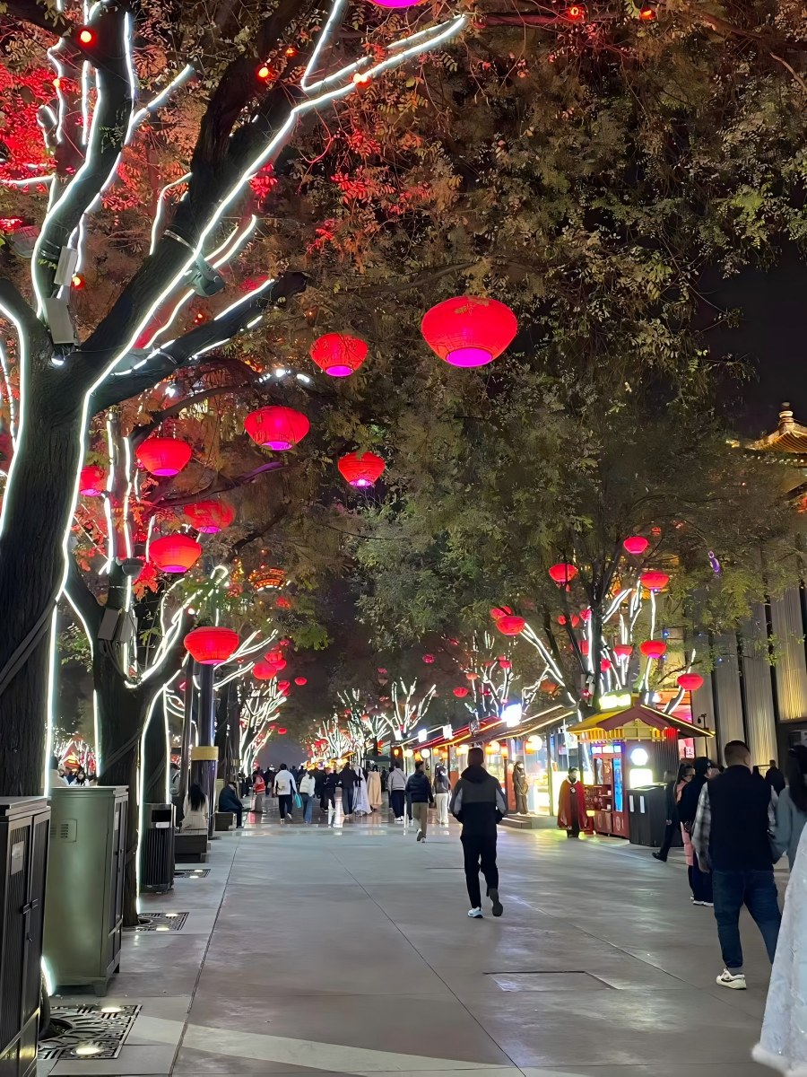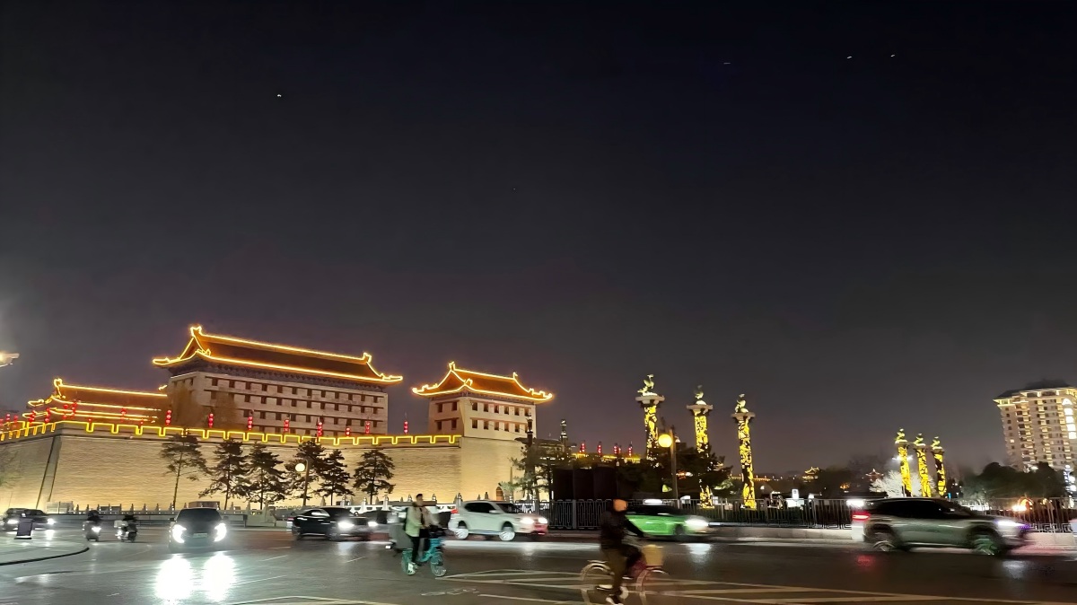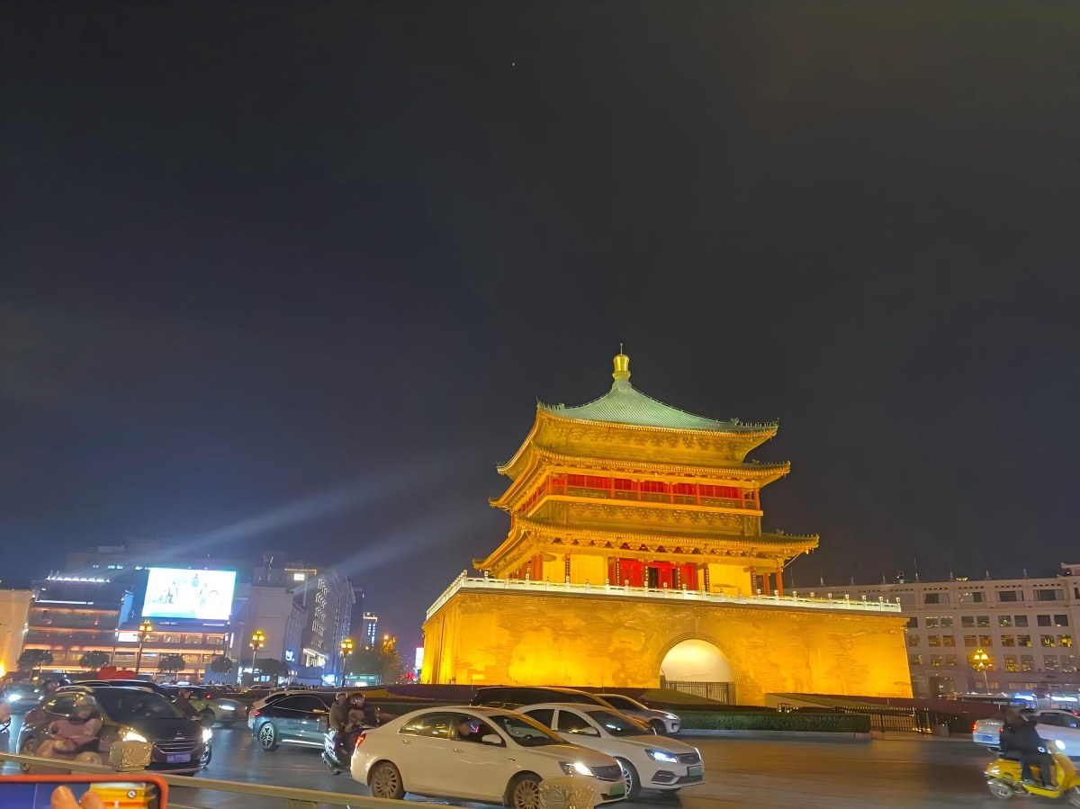 On December 7th, our family embarked on a road trip from Zhengzhou, driving along the expressway toward the ancient city of Xi'an. Arriving in the afternoon, we were immediately captivated by the city's timeless charm. As dusk fell, we visited the iconic Bell Tower, its illuminated structure casting a golden glow over the bustling square below. Surrounding the tower, groups of travelers dressed in Tang Dynasty costumes posed for photos, creating a vivid tableau of history meeting modernity. For dinner, we indulged in local specialties—lamb paomo (a hearty soup with shredded bread) and spicy marinated jelly noodles, savoring the bold flavors of Shaanxi cuisine.