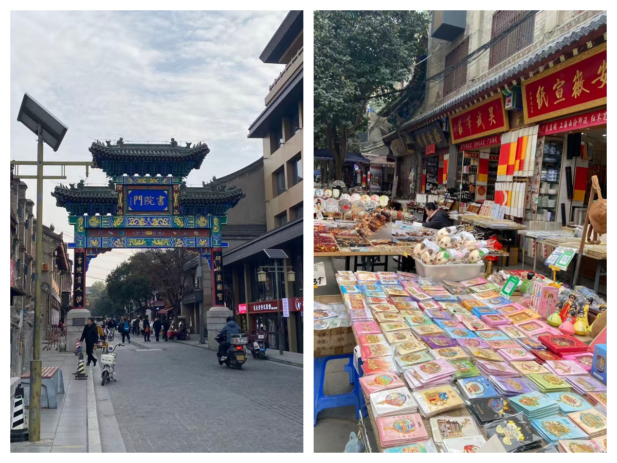 The next morning (December 8th), we explored Xi'an’s ancient City Wall, one of the most complete and best-preserved city walls in China. With fewer tourists in December, the scene was serene, save for a few international visitors pedaling bicycles along the 13.7-kilometer fortification, blending adventure with history. Adjacent to the wall, we wandered through Shuyuanmen Cultural Street, lined with shops selling calligraphy supplies, antiques, and handicrafts. The air hummed with creativity as artists crafted ink paintings and calligraphy scrolls, offering glimpses into China’s literary heritage.
