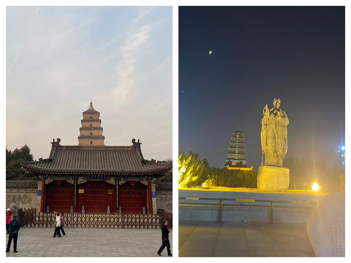In the afternoon, we visited the Grand Wild Goose Pagoda, a symbol of Buddhist culture, before immersing ourselves in the vibrant energy of the Tang Paradise Night Market. As night fell, the pedestrian street transformed into a dazzling spectacle of lights, music, and performances inspired by the Tang Dynasty’s golden age. Crowds gathered to watch traditional dances and acrobatics, while street vendors tempted us with steaming bowls of rice noodles and roujiamo (Chinese-style hamburgers stuffed with seasoned meat), a perfect end to the day.