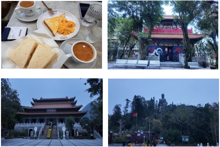 Next, we visited the renowned Tian Tan Buddha, also known as the Big Buddha. This majestic bronze statue sits serenely at an elevation of 482 meters on the Ngong Ping plateau. The site provides stunning panoramic views of the surrounding mountains and sea. Adjacent to the statue is the Po Lin Monastery, a key Buddhist center in Hong Kong. The monastery complex features beautiful traditional architecture, peaceful courtyards, and houses various sacred statues and artifacts. It was really a wonderful and enjoyable day.