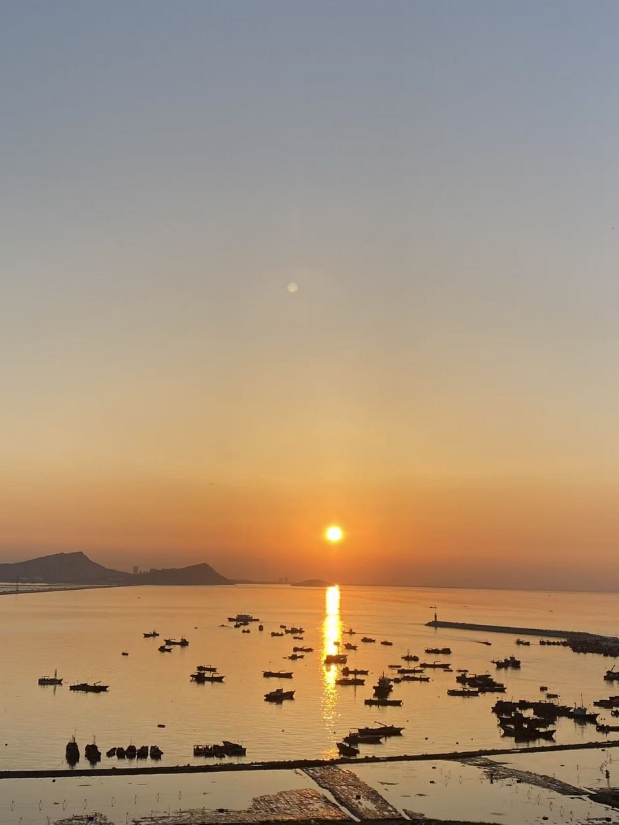 In the morning, we watched the sunrise on Lian Island. Unlike the passionate farewell of a sunset, a sunrise over the sea is a rebirth full of hope. The sky gradually changed from fish-belly white to pale pink and orange-yellow. Finally, a red sun burst forth, and countless golden rays filled the sea surface, creating a shimmering effect like diamonds sparkling.