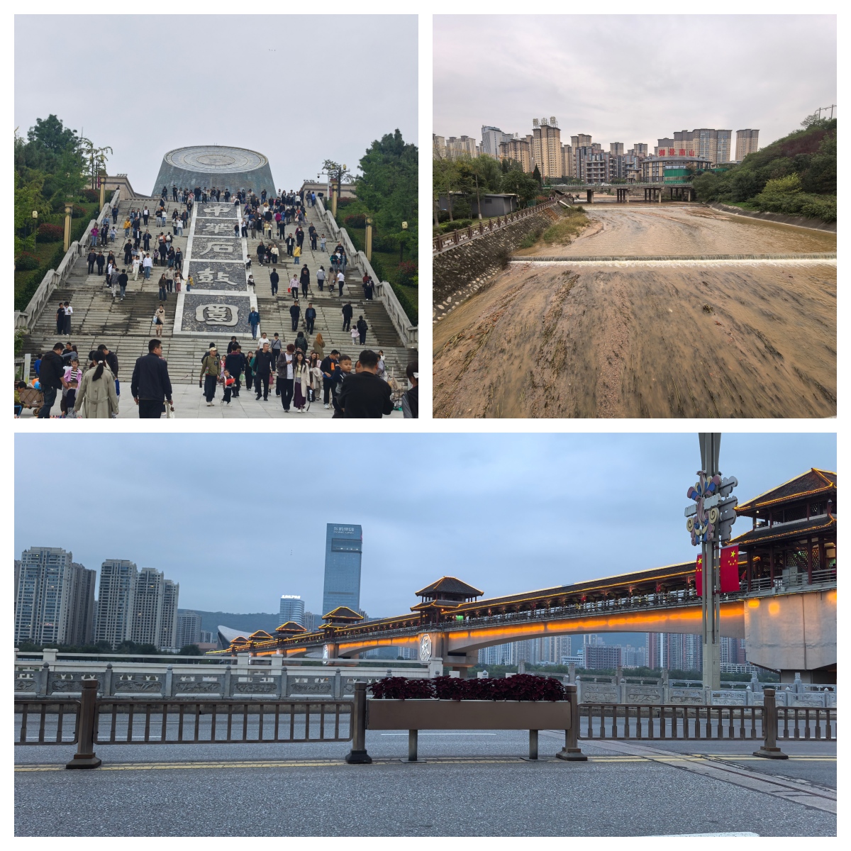 In the afternoon, I climbed the Chen Cang Stone Drum Pavilion in Zhonghua Stone Drum Park(中华石鼓园), where the entire city of Baoji unfolded beneath me. The Qinling Mountains stretched endlessly, the Wei River meandered gracefully, and the modern city blended seamlessly with the ancient land.