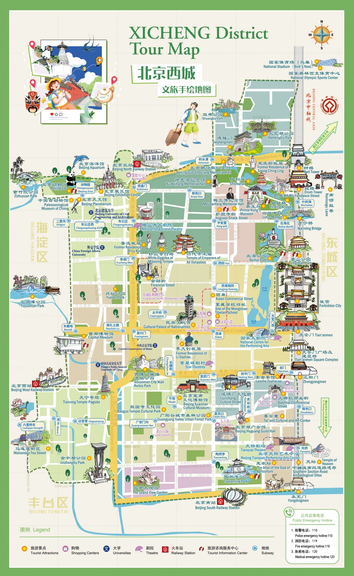 Attractions features iconic spots such as Jingshan Park (the highest point of the Central Axis), Prince Kung’s Mansion, Shichahai, the Bell and Drum Towers, and Beijing Zoo, where visitors can see giant pandas.